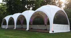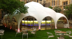 The smallest dome is the size of a typical garden gazebo, but much more sturdy. Seated dining: 8 to 10 guests Mingling/dancing: 10 to 18 guests